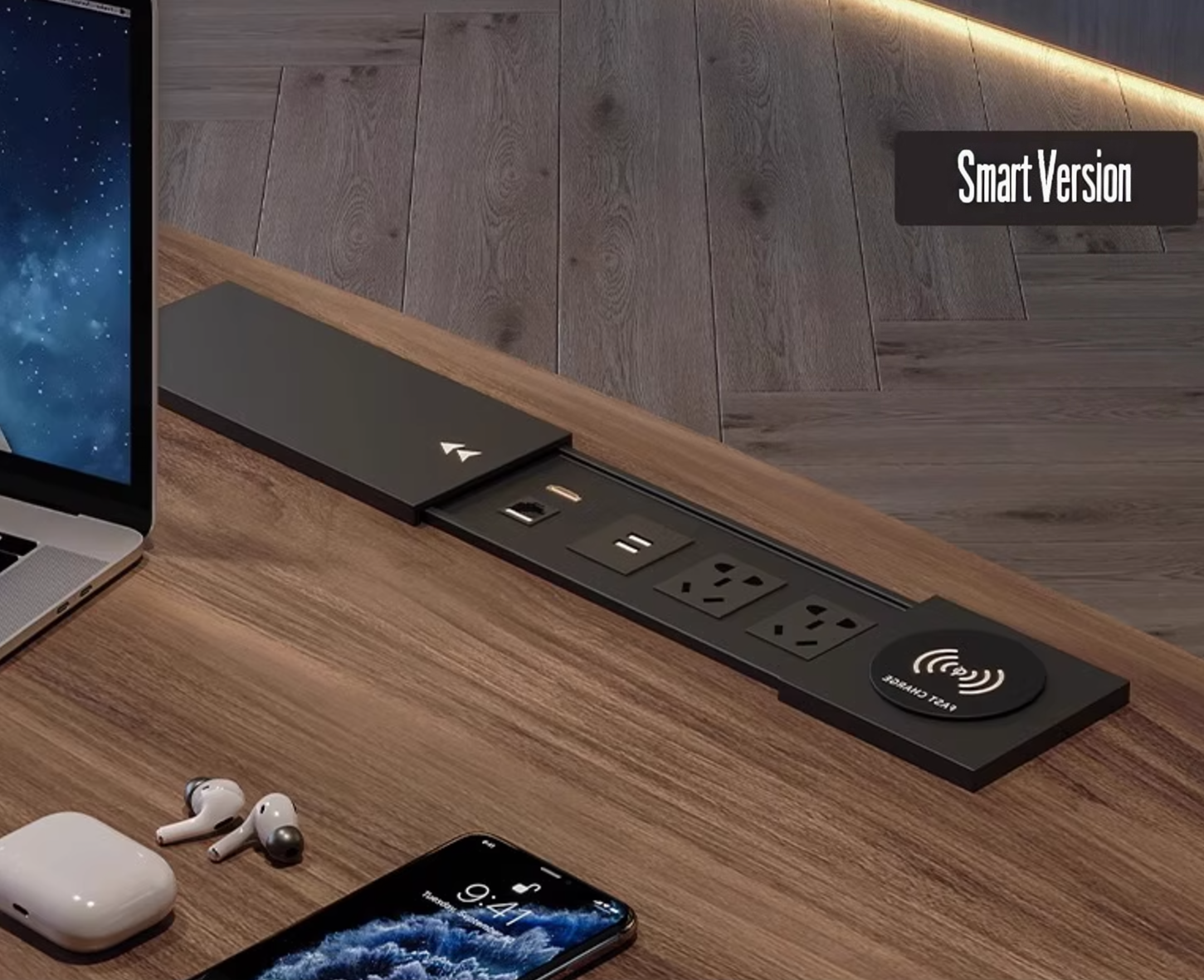 Built with E1-certified engineered wood, multi-layer solid wood panels, and carbon steel framing, this desk ensures durability and stability. The quiet sliding rail system provides smooth functionality, while the customizable surface finish allows you to match your interior style.