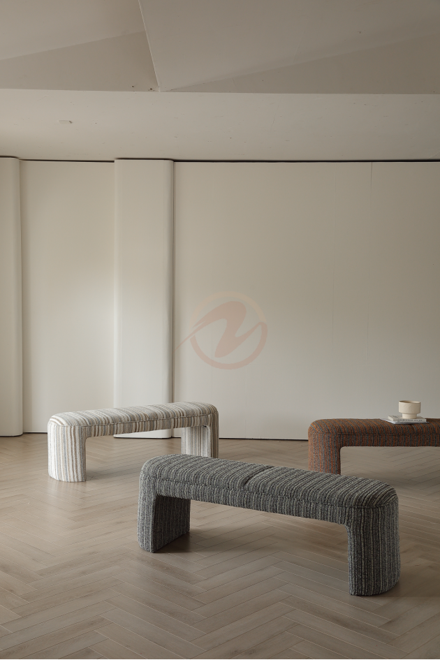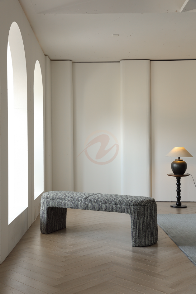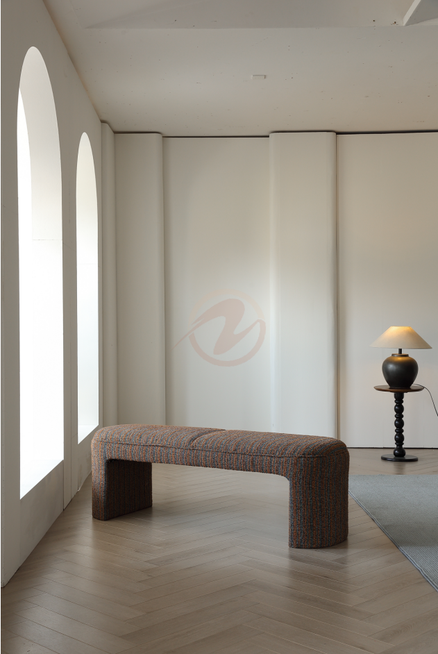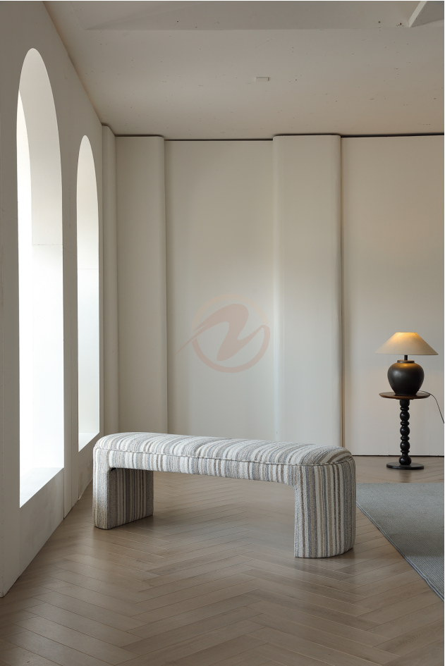 Elevate your space with the ÉLYSÉ Bohemian Provence Bench. Designed with a solid wood frame, plush high-density foam, and elegant three-dimensional woven fabric in subtle beige-grey stripes, this bench is the perfect blend of comfort and style. Ideal for your bedroom, hallway, or living room, it’s ready to use straight out of the box—no assembly needed. Add a touch of boho sophistication to any room effortlessly.