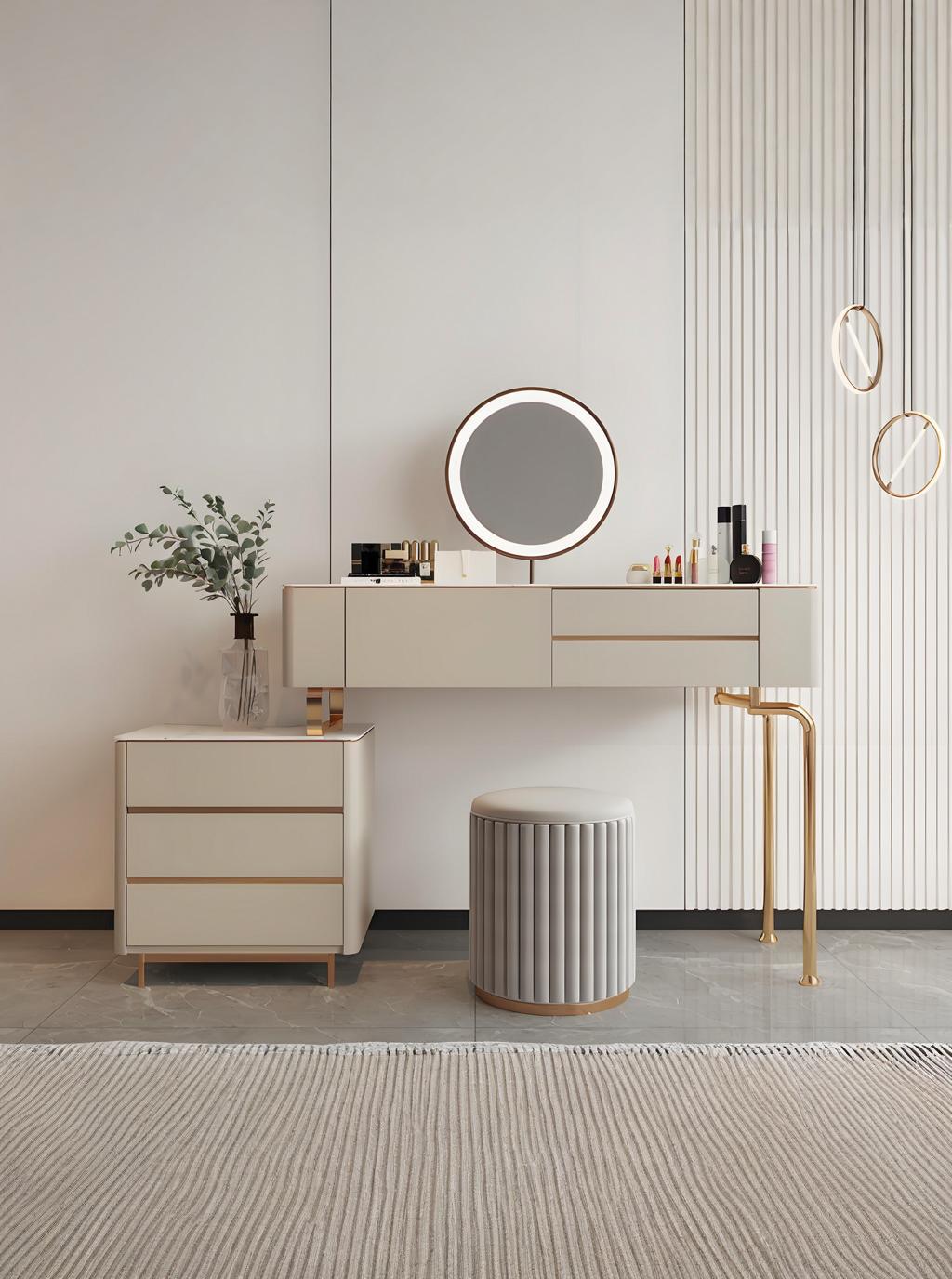ransform your bedroom into a modern luxury retreat with the TRAGO PLUS 6042-ABC Vanity Set. Designed with an Italian-inspired aesthetic, this vanity combines premium materials, elegant craftsmanship, and practical storage to create the perfect beauty corner.